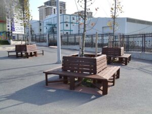 Este banco es un elemento clave del paisajismo decorativo. Su diseño hexagonal u octogonal está pensado para abrazar el tronco de un árbol o una plantación central, convirtiéndolo en un punto focal de descanso y contemplación. Construido con listones de madera tratada (tonos miel/cedro) y una barandilla protectora interna, se vende por su alto valor estético y su capacidad para crear un espacio de reunión en patios, jardines privados o áreas comunes.